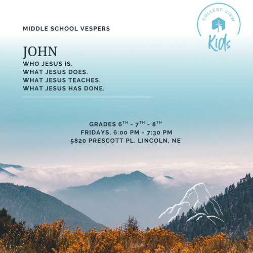6:00 pm: Middle School Vespers (6th-8th Grade)