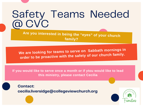 In the Great Commission, Jesus invites us to go and MAKE DISCIPLES of all nations. At CVC, we want to make sure each of us has the opportunity to grow in our spiritual maturity as a follower of Jesus. On Sabbath, October 11 from 1:30-3:30pm, we are offering four classes. Each class is designed to help us grow deeper in our faith and ministry life. All are invited to participate, including children who are members. Our next one will be in the Spring!