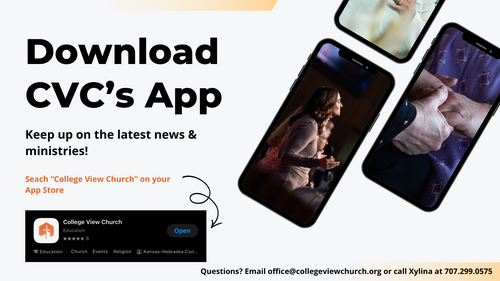 Remember, CVC has an APP! Search "College View Church" on your app store to download it, or, if you need help, call Xylina at 707.299.0575.