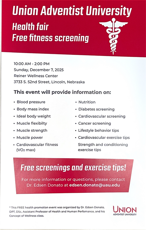 10:00 am: Free Health Fair (Reiner Wellness Center)