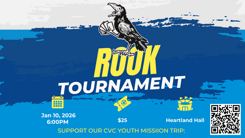 Rook Tournament: Join us for an exciting night of fun and fellowship at our Rook Tournament Fundraiser on Sabbath, January 10 at 6pm in Heartland Hall! For just $25 per person, you can enjoy a night of friendly competition while directly supporting the vibrant youth ministry at CVC. Pathfinders will be providing Blazer Burgers, Corn Dogs, Grilled Cheese at an affordable cost! Whether you’re a seasoned Rook player or new to the game, everyone is welcome to participate in this fun-filled evening.